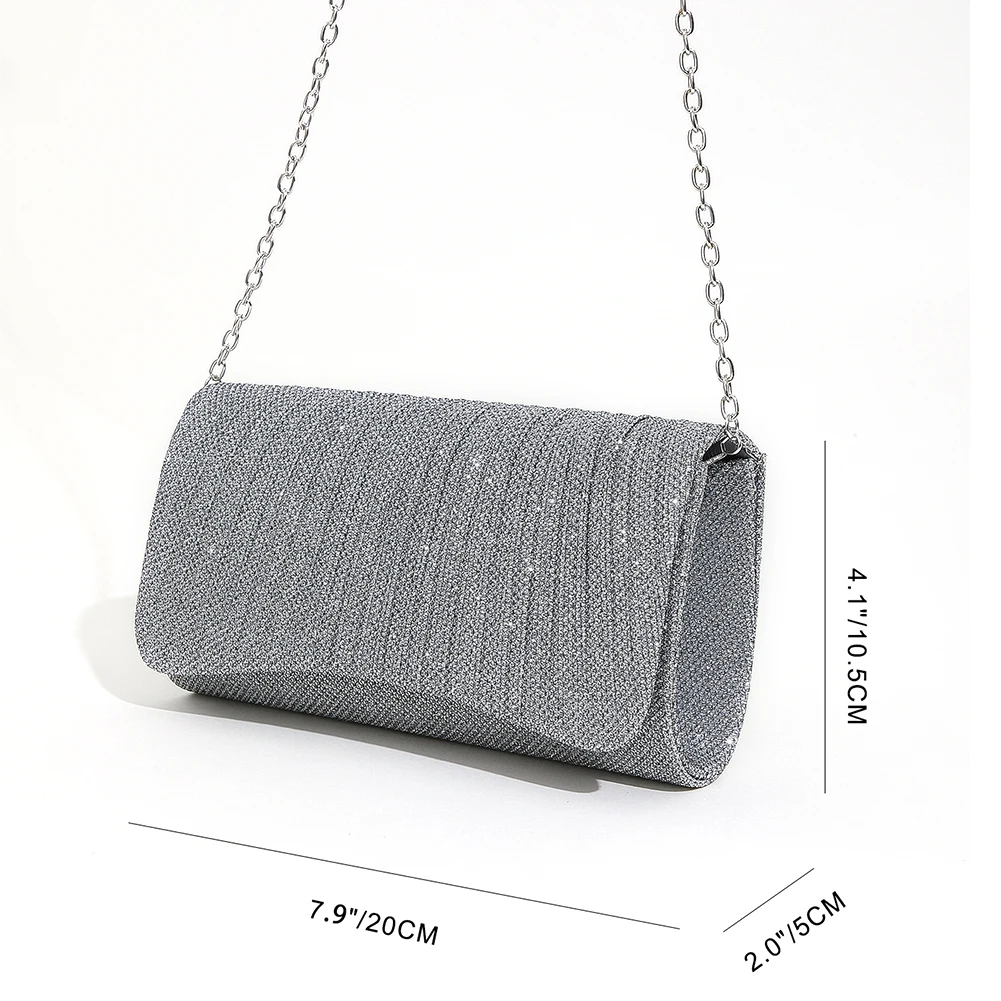 3. Versátil y elegante: este bolso de mano brillante complementa sin esfuerzo varios atuendos y estilos. Ya sea que uses un clásico vestido negro corto o un encantador vestido de noche, este bolso tipo sobre de mano agrega un toque de elegancia y perfección a tu apariencia general. Sirve como el accesorio perfecto para realzar la sofisticación y delicadeza de tu atuendo de noche.